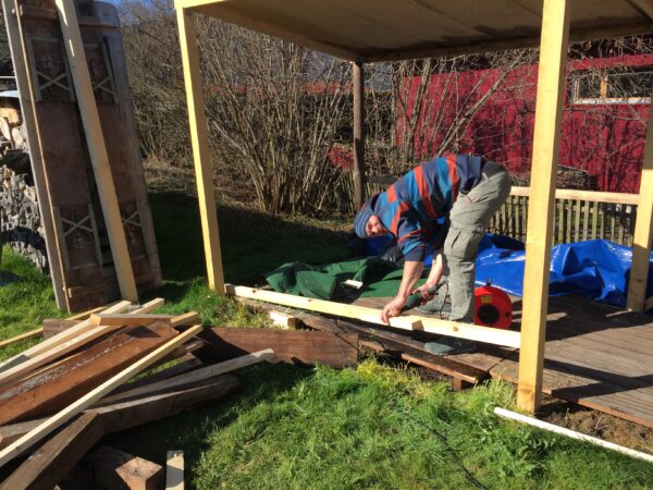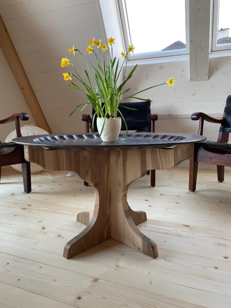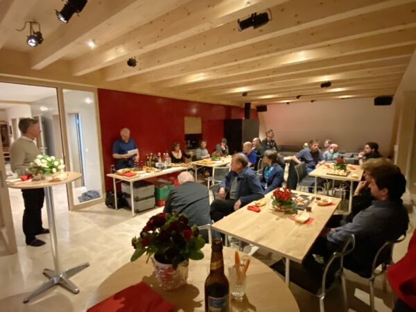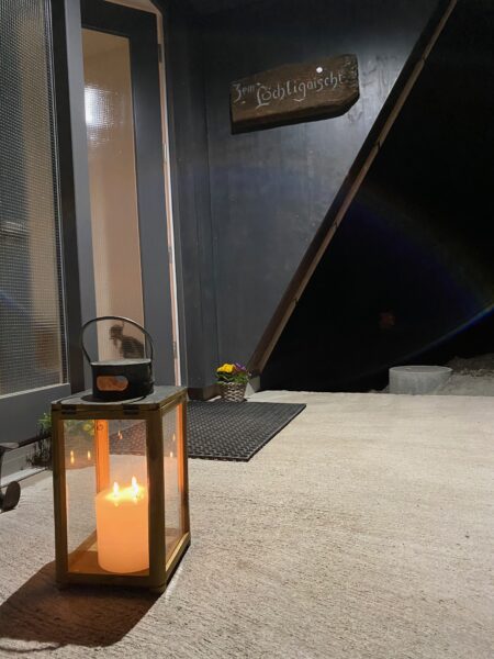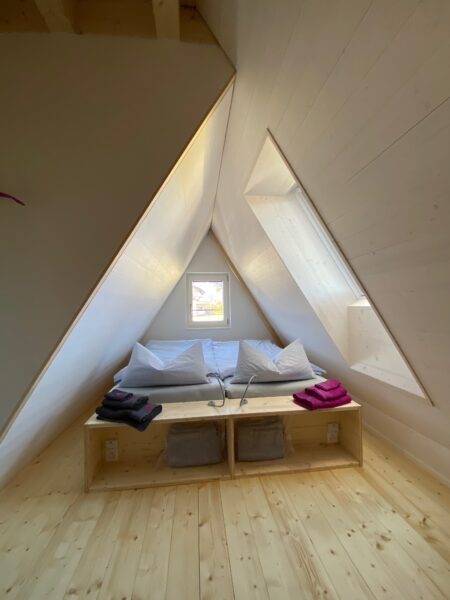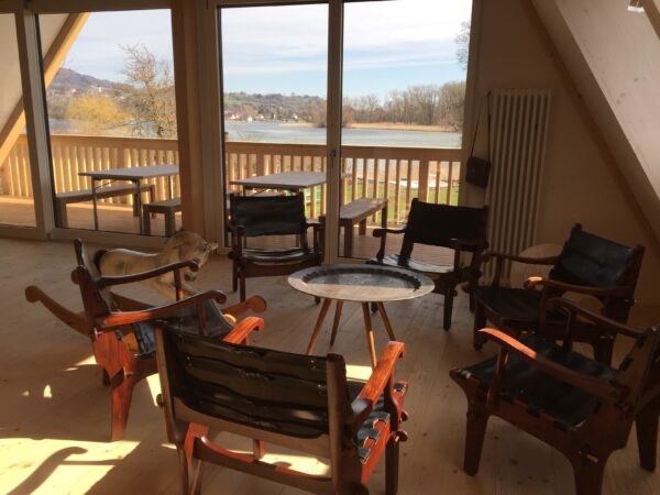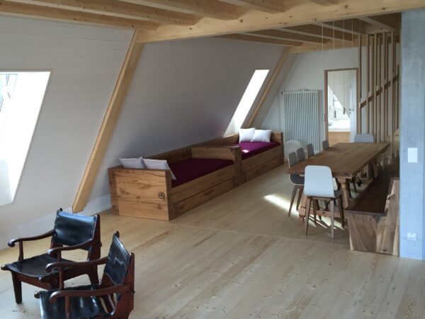 Auch wenn die Umgebung noch nicht fertig ist (dazu später), so sieht es im Haus drinnen doch schon sehr gesellschaftlich und wohnlich aus und angeschrieben ist das Haus auch wieder.Der grosse Nussbaum, der noch bis vor zwei Jahren im Herzen des Areals stand, dann aber vom Sturm Burglind zerzaust wurde, steht nun in anderer, voller Pracht im Haus. Wunderbar, dass er uns so für lange erhalten bleibt.Aber auch die Eichenbalken, die 50 Jahre den alten Löchligaischt stützten, leben heute in Form eines prächtigen Möbelstücks weiter. Unsere Schreiner haben fantastische Werke geschaffen – herzlichen Dank an die Steiners.Nicht zu vergessen, die lange Nussbaumbank mit dem alten Tisch daneben.In der gemütlichen Ecke gesellt sich das Grossmutter-Gampiross zu den Stühlen, die wir von Pakistan (via Schweiz – Fiji) mitgebracht haben.Und da steht ein weiteres Nussbaum-Bijou im Zentrum, der Fuss des Kupfertellertischs.Der Lichtteppich leitet Nachtwandelnde sicher und ohne Knopfdruck durchs ganze Haus.Nun hat auch der Rotwein seinen Platz gefunden …… sowie auch der Drucker / Scanner für Seminare etc.Ein paar Betten sind bereits bezogen und darin auch schon eine Probenacht verbracht.… vielleicht die schönsten Schlafplätze im Haus, im Seeblick des Dachgeschosses.Im Garten geht es auch voran und hoffentlich wächst auch schon bald wieder Gras bis zum Wasser.Auf der Westseite nimmt der Parkplatz klare Formen an.Im Gegensatz zum Aufbau, haben wir das provisorische Gartenhaus wieder abgerissen.Und zum Schluss feierten wir am letzten Freitag noch das Handwerkerfest. Jetzt könnte es dann wirklich losgehen, wäre nicht dieses kleine Wesen Corona, welches die ganze Welt auf den Kopf stellt.