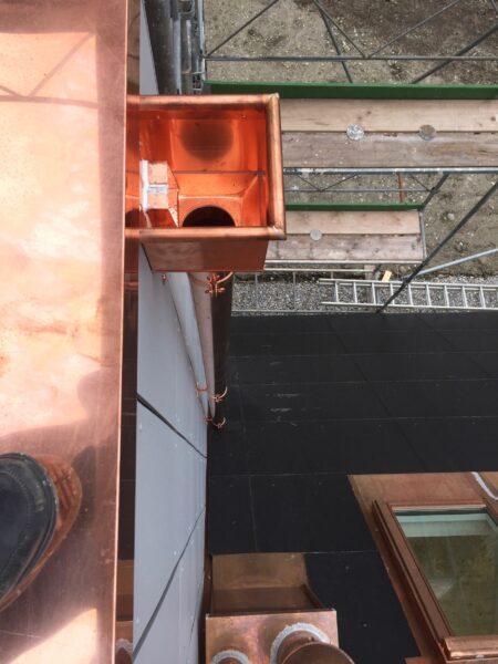 Auch der Regenwasserabfluss von diesem Dach ist nun schallhemmender installiert.