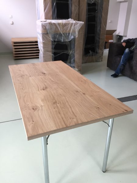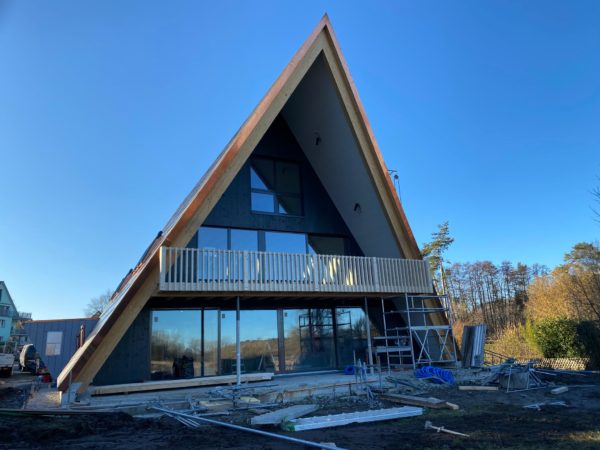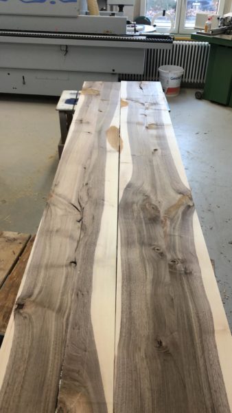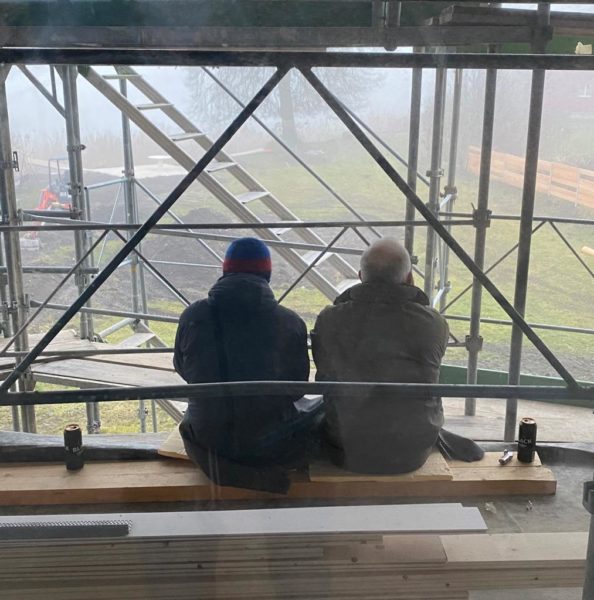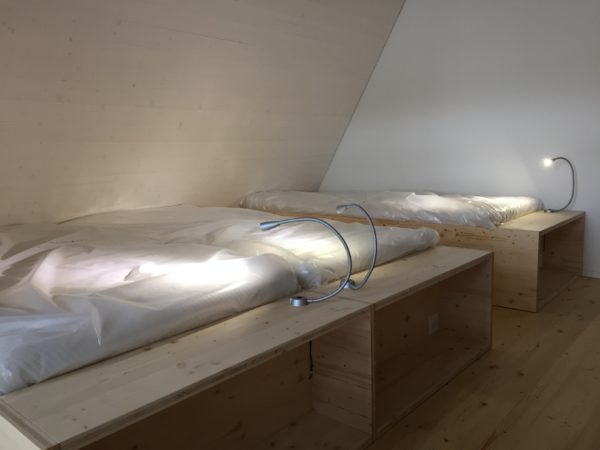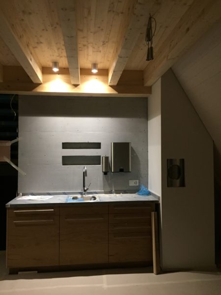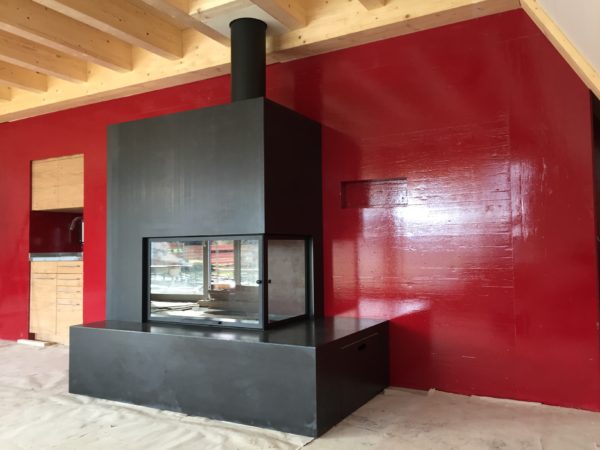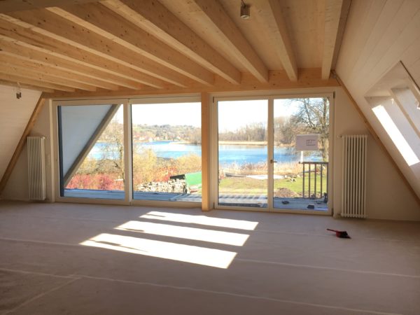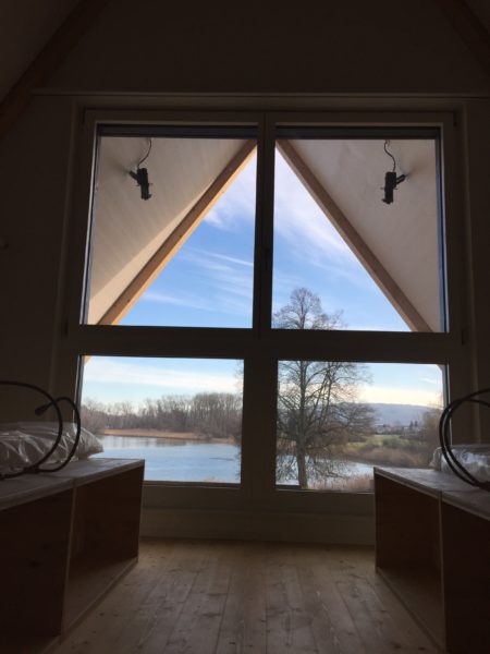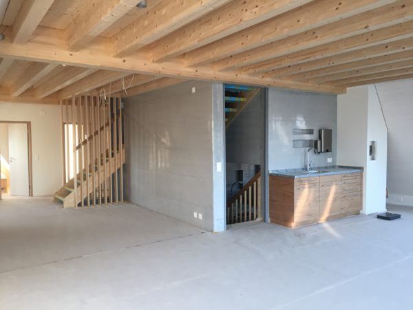 Liebe Blogleserinnen und -leser, es war einfach zu viel los und der Blog erfuhr in den letzten Tagen (und Wochen) etwas wenig Aufmerksamkeit, tut mir leid. Inzwischen ist aber doch einiges passiert, dazu unten einige Bilder vom Stand der Dinge.Das Gerüst ist weg und der Ausblick Richtung Wasser nun frei …… wahrlich eine sehr privilegierte Lage.Im Vergleich zum alten Löchligaischt ist der Balkon (zwar nur noch einer) einiges grösser und auch durch das schräg nach vorne gezogene Dach auch besser geschützt.Auch die Beleuchtung für diesen geschützten Aussenbereich ist bereits montiert.Das Schlafzimmer „Seeblick“ im Dachgeschoss geniesst nicht nur Morgensonne, sondern die beste Übersicht über die Nilibucht.Jetzt aber nach Innen: Diese Woche hat uns Bruno Lechner das Cheminée montiert, es fehlt nur noch das erste Feuer darin.Im Obergeschoss ist alles bereit, die Baureinigung zu erfahren und dann eingerichtet zu werden.Und beim näher betrachten zeigt sich hier eine Meisterarbeit der Schreiner, das Treppengeländer zu den Nasszellen hinauf.Aber auch die Betten der Schlafzimmer „Doppeldecker“ und „Deux Pièces“ sind trefflich und schön gelöst, danke Michi und Gimi.Wenn wir schon von der Schreinerarbeit sprechen, das sind unsere Seminartische, ich freue mich sehr über dieses Eichenmultiplex, was wir für alle Einbaumöbel auch verwenden konnten.Und wenn wir schon von Tischen sprechen, das ist unser aufgesägter Nussbaum, aus dem dann der grosse Esstisch entsteht, was für ein Glück für uns, dass unser eigener Baum hoffentlich noch viele Jahre als wunderschöner Esstisch dienen kann.Sideboard beim grossen Esstisch.Das alte Brünneli aus dem Vorgänger-Löchligaischt hat auch seinen prominenten Platz gefunden.Diese Farbe gefällt uns allen sehr.Im Dachgeschoss kann schon beinahe geschlafen werden.Vor einigen Tagen ist auch die Polstergruppe für den Cheminéeraum von Norddeutschland eingetroffen, bequem!Nach getaner Arbeit ein Bier und ein Schmouchi, Fridl und ich.